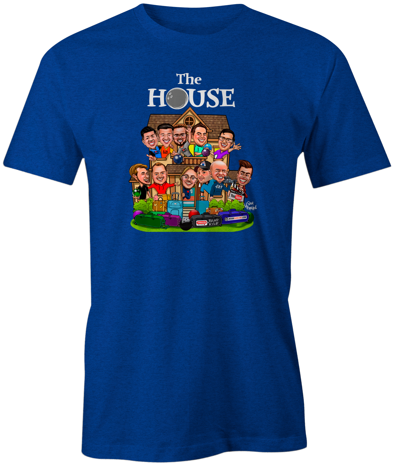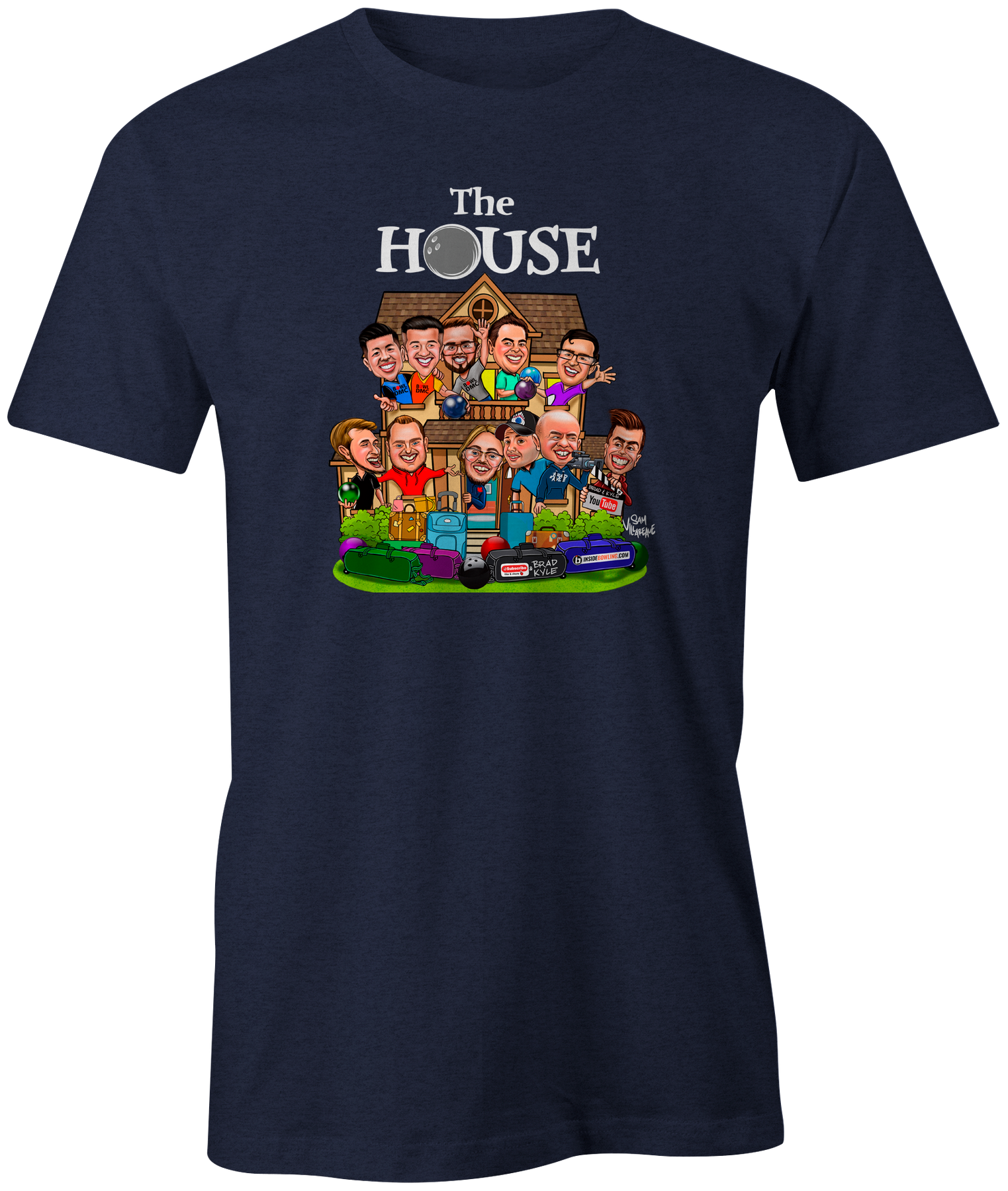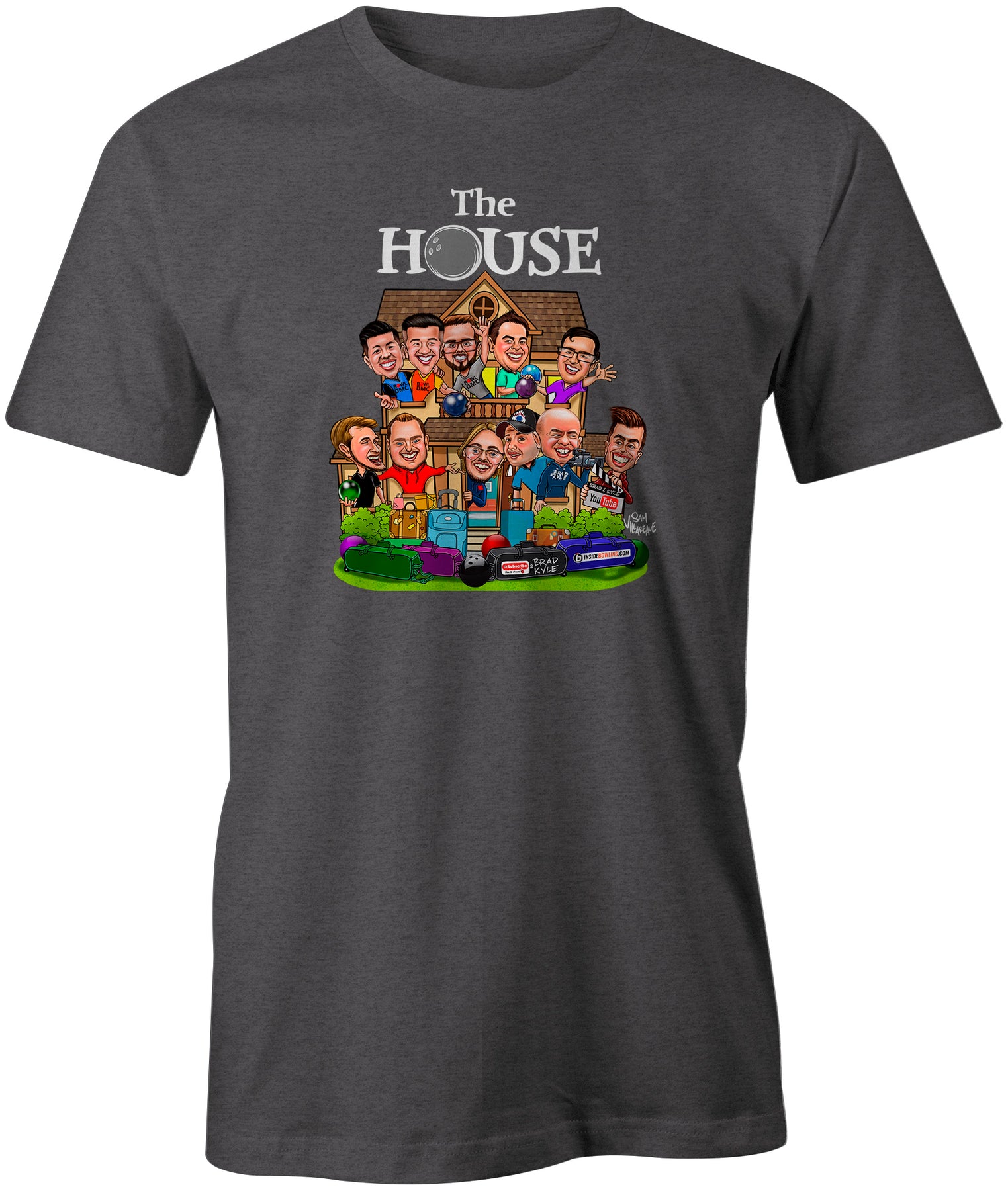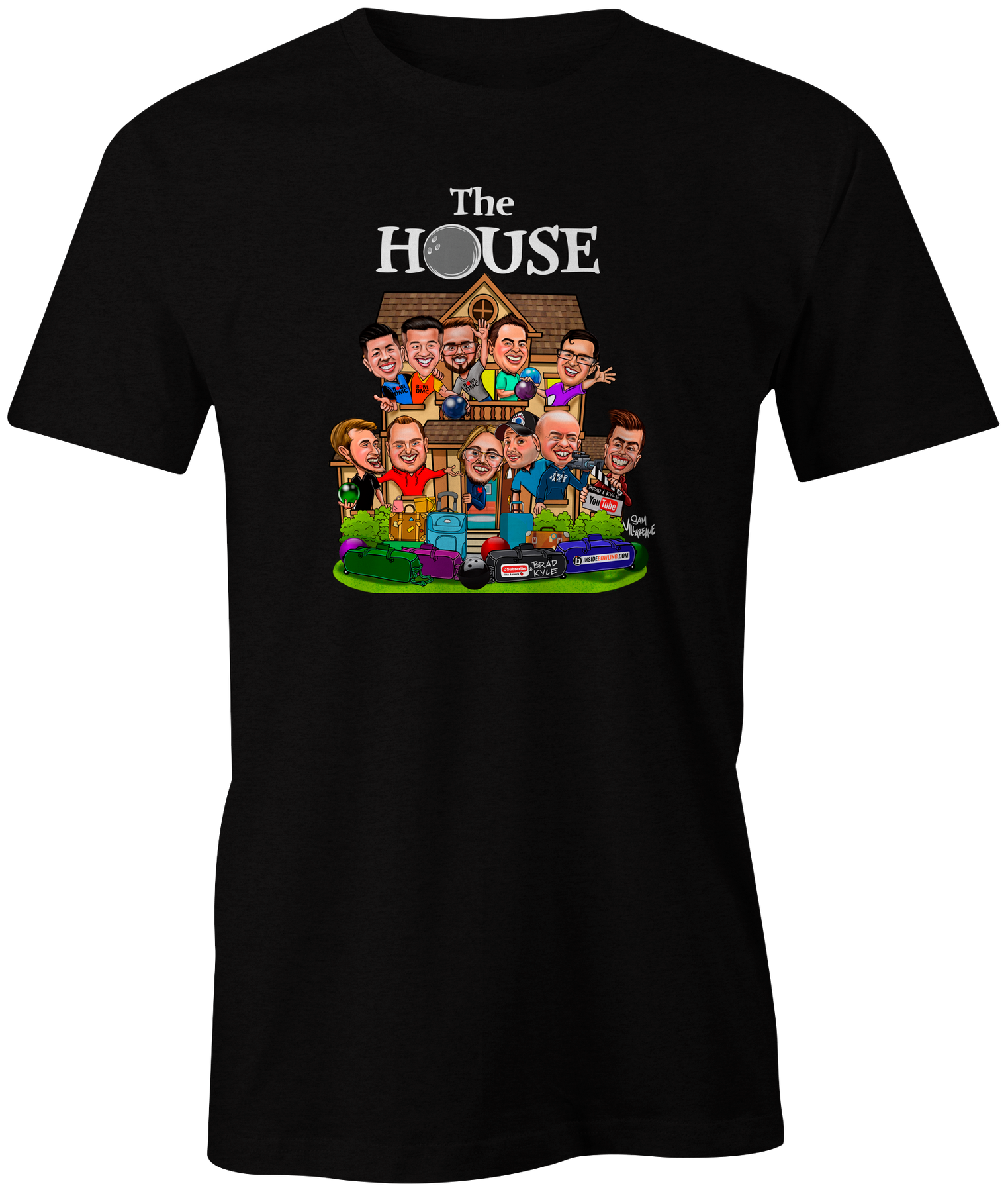 Shirt features all characters from the house in cartoon character form designed by Sam Villareale.